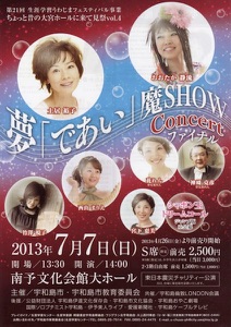 ☆2013年7月7日(日)故郷・愛媛県宇和島市で行われるコンサートに司会と演奏で出演いたします。